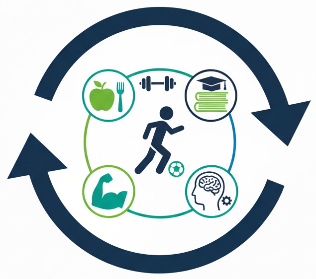 No solo se trabaja el fútbol, también se cuida la nutrición, el desarrollo físico, la psicología deportiva y la educación académica. Se centra 100% en la progresión individual del jugador.